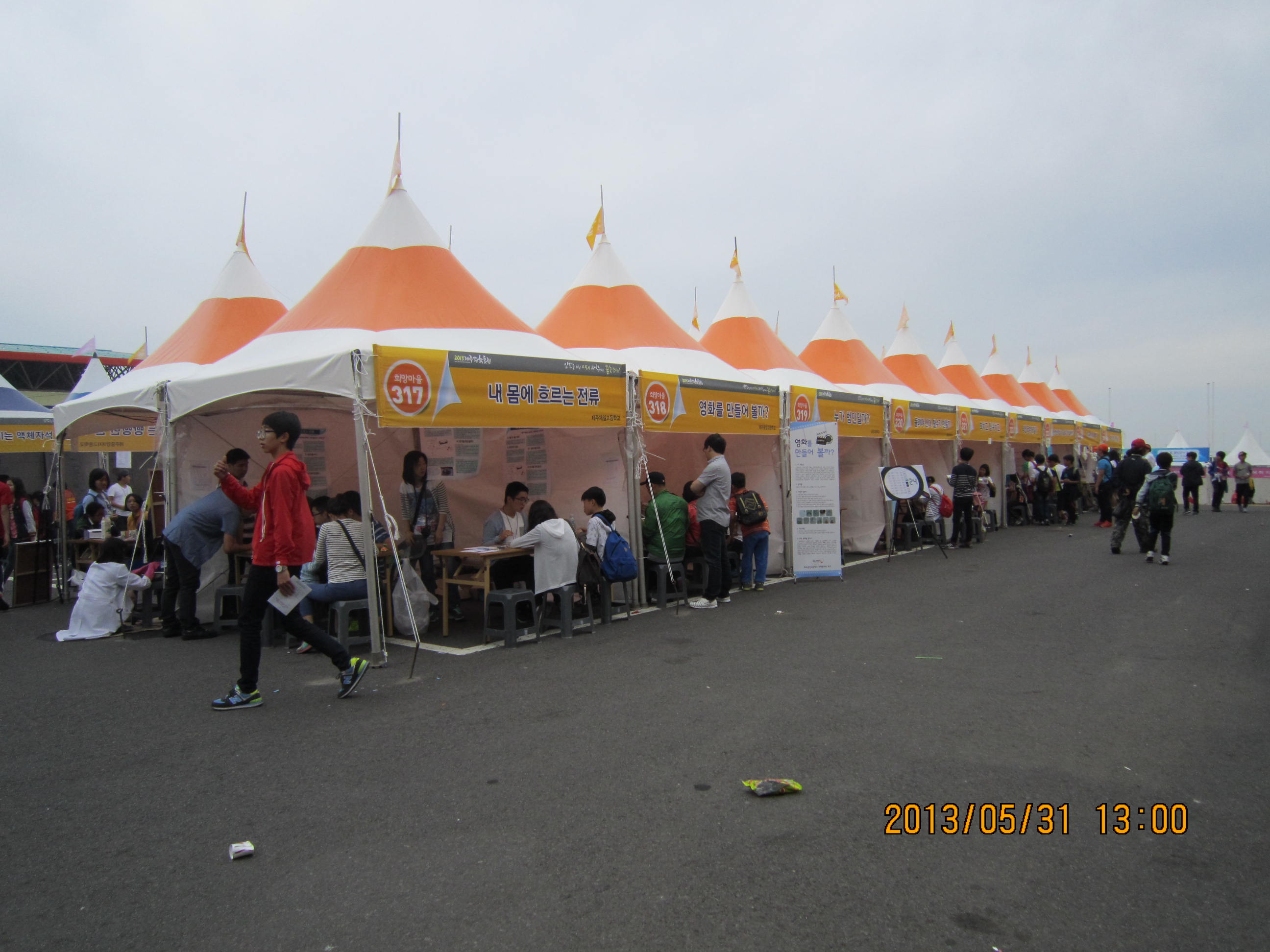 事故防止のためにグランドにひかれた「安全白線」の外側にドラム缶を取り囲み数百人が観察しました。